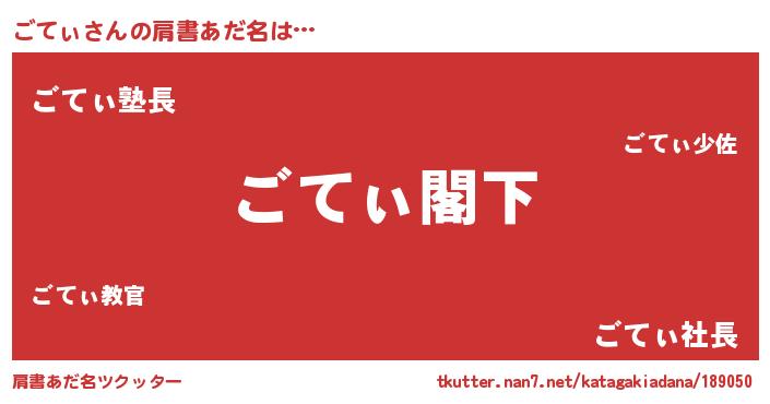 | ピコ太郎風あだ名 | 『ゴテ二郎』『ゴコ五郎』『ピゴ三郎』 |