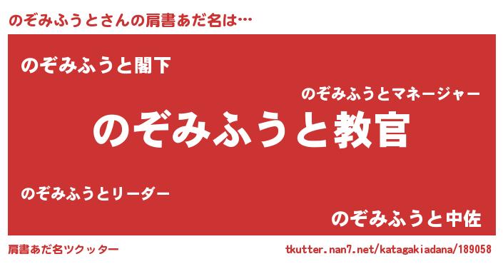 | ヒーロー風カッコイイあだ名 | 『仮面ノゾダー』『最強戦士ノゾミフウト』 |