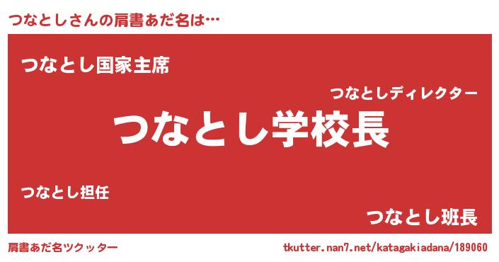 | ポケモン風あだ名 | 『ツックウザ』『ツナトダネ』 |