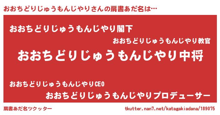 | 料理風あだ名 | 『おおちどりじゅうもんじやりごはん』 |