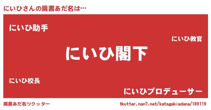 | 欧米人風あだ名 | 『ケンブリッジにいひ』『ダニエルにいひ』 |