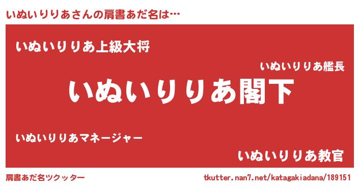 | 男性向けラノベタイトル風あだ名 | 『Re:いぬいりりあから始める異世界生活』 |