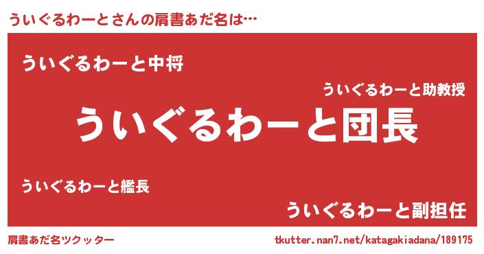| 意味不明あだ名 | 『とにかく怪しいういぐるわーと』 |