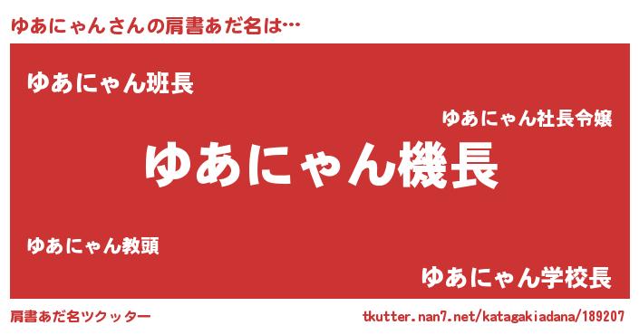 | 男性向けラノベタイトル風あだ名 | 『うちのゆあにゃんが世界を掌握している!』 |