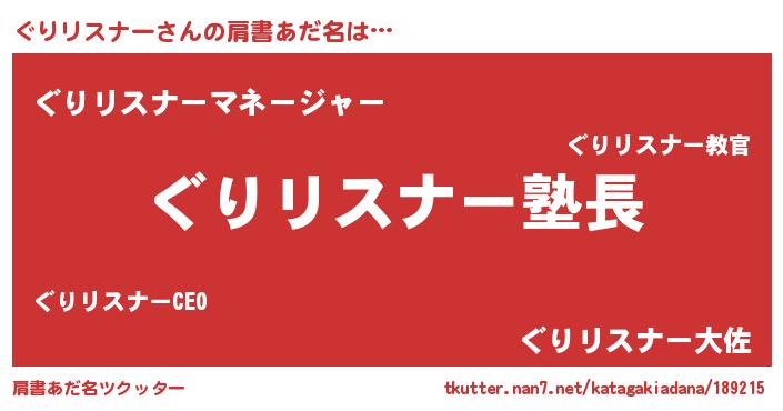 | 男性向けラノベタイトル風あだ名 | 『ぐりリスナーの嫁は女の子じゃないと思った?』 |