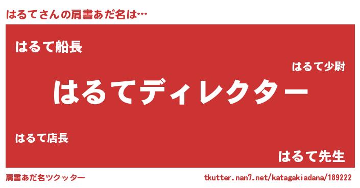 | 男性向けラノベタイトル風あだ名 | 『はたらくはるてさま!』『緋弾のハルテ』 |