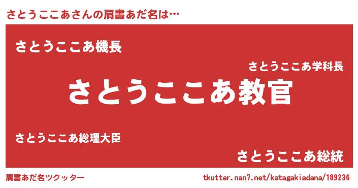 | 男性向けラノベタイトル風あだ名 | 『魔弾の王とさとうここあ』 |