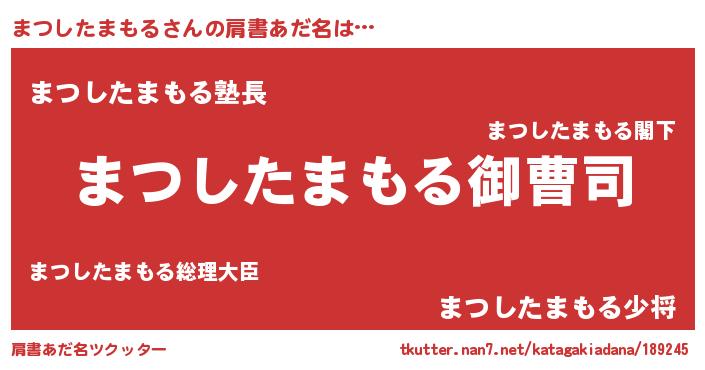 | 胡散臭い通販商品みたいなあだ名 | 『モテモテ間違いなし霊験あらたかなお札…その名も「まつしたまもる」』 |