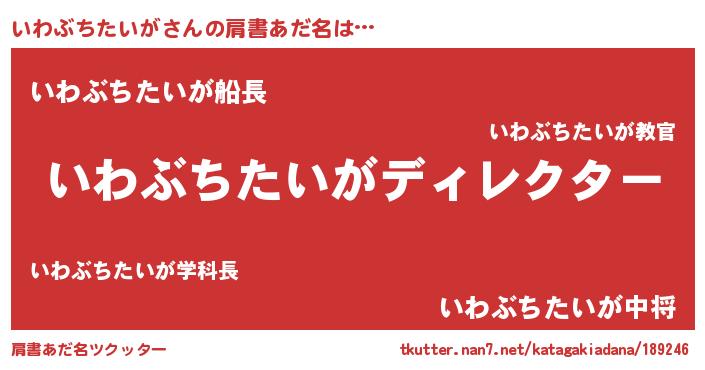 | ヒーロー風カッコイイあだ名 | 『仮面イワダー』『ネオイワブチタイガ』 |