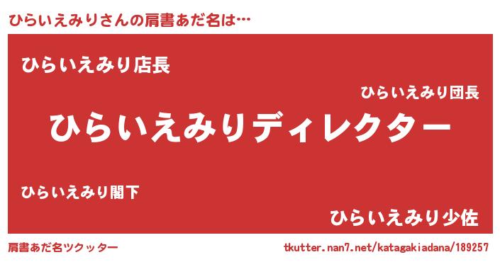 | 男性向けラノベタイトル風あだ名 | 『はたらくひらいえみりさま!』 |