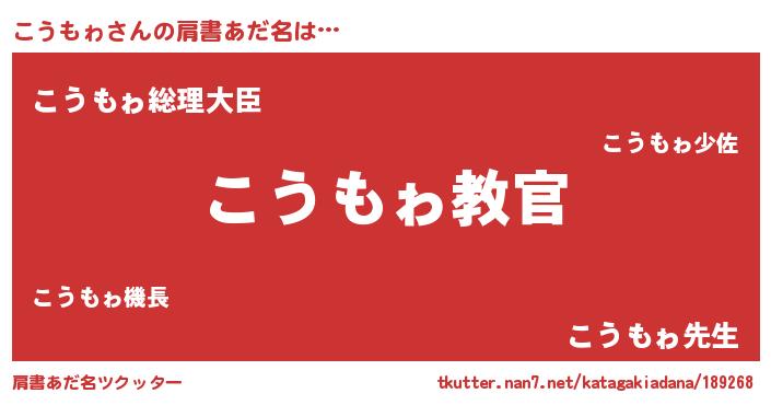 | 意味不明あだ名 | 『住所不定無職こうもゎ(50歳)』 |