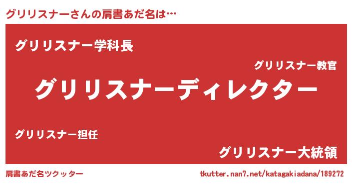 | 男性向けラノベタイトル風あだ名 | 『はたらくグリリスナーさま!』 |