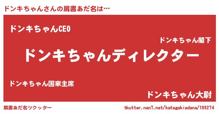 | 男性向けラノベタイトル風あだ名 | 『ドンキちゃんに滅ぼされるだけの簡単なお仕事です』 |