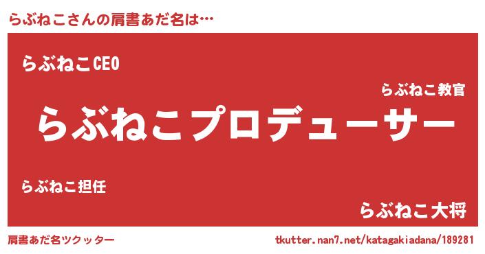 | ヒーロー風カッコイイあだ名 | 『スーパーラブネコ』『仮面ラブダー』 |