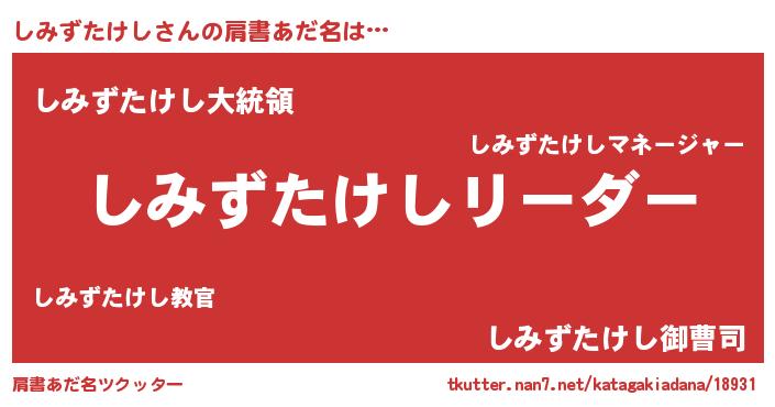 | 男性向けラノベタイトル風あだ名 | 『ダンジョンにしみずたけしを求めるのは間違っているだろうか』 |