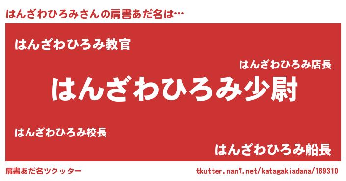 | 男性向けラノベタイトル風あだ名 | 『転生したらはんざわひろみだった件』 |