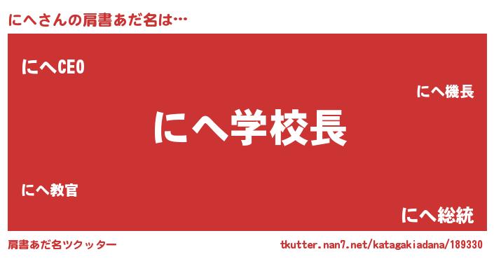 | ヒーロー風カッコイイあだ名 | 『正義の使者にへ』『スーパーニヘ』 |