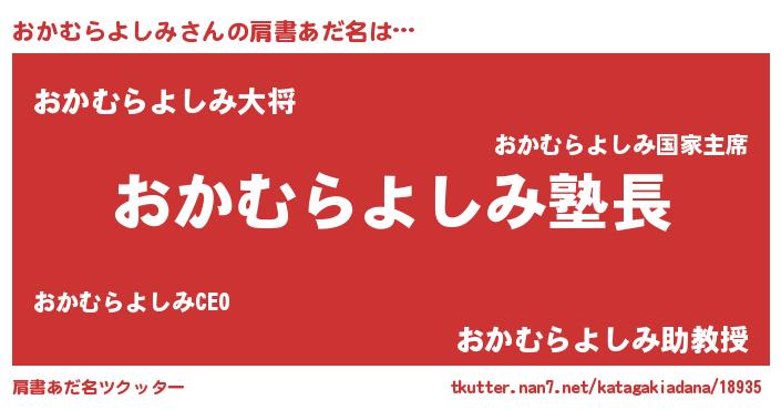 | 意味不明あだ名 | 『とにかく怪しいおかむらよしみ』 |