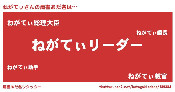 | 意味不明あだ名 | 『とにかく怪しいねがてぃ』 |
