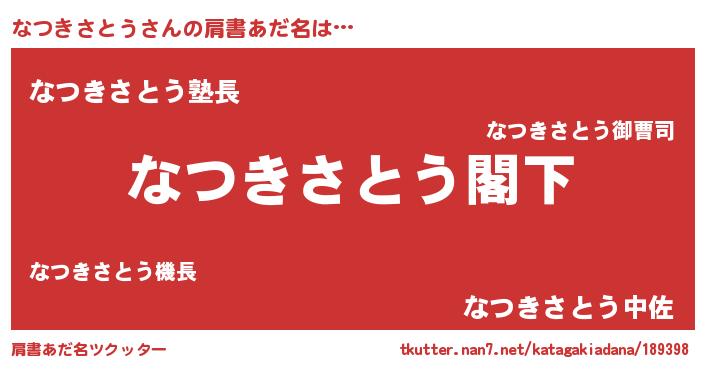 | ポケモン風あだ名 | 『ナツセウス』『ヒナツキサトウ』 |