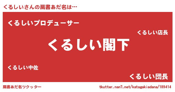 | ヒーロー風カッコイイあだ名 | 『最強戦士クルシイ』『暗黒騎士クル』 |