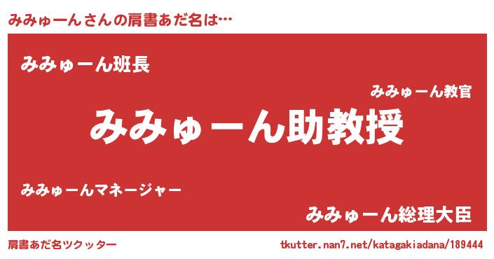 | ヒーロー風カッコイイあだ名 | 『友情の使者みみゅーん』『幻影騎士ミミ』 |