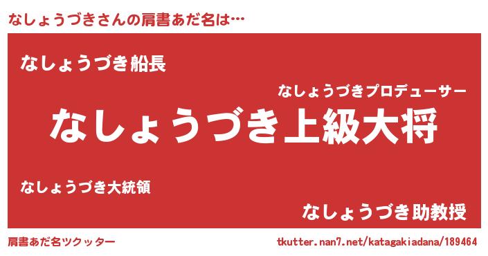 | 男性向けラノベタイトル風あだ名 | 『転生したらなしょうづきだった件』 |