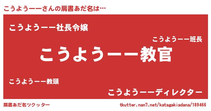 | ヒーロー風カッコイイあだ名 | 『仮面コウダー』『スーパーコウヨウーー』 |