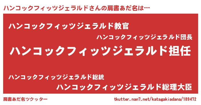 | 男性向けラノベタイトル風あだ名 | 『ハンコックフィッツジェラルドという概念が存在しない退屈な世界 』 |