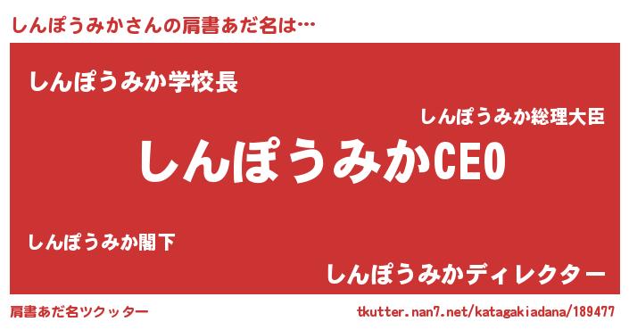 | 男性向けラノベタイトル風あだ名 | 『しんぽうみかの憂鬱』 |