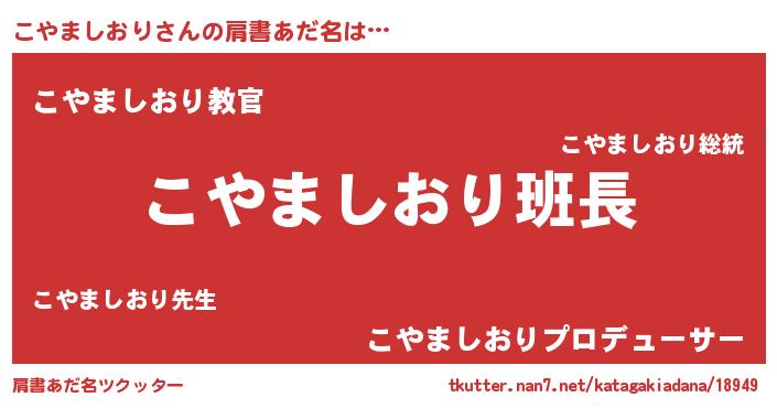 | 意味不明あだ名 | 『とにかく怪しいこやましおり』 |