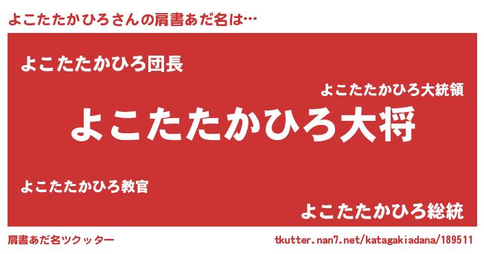 | ポケモン風あだ名 | 『ヨコキング』『ヒヨコタタカヒロ』 |