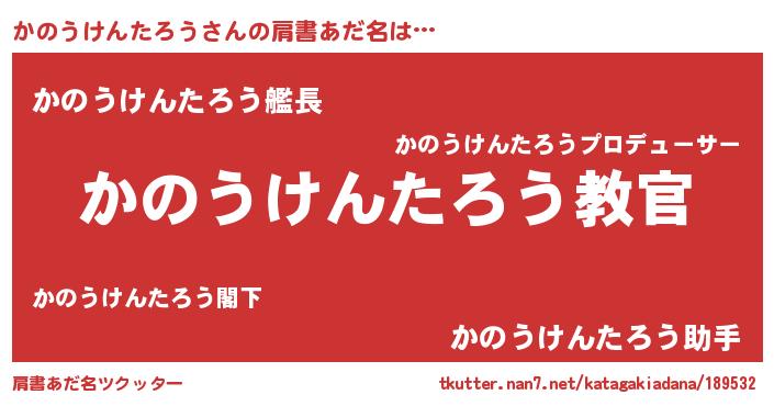 | 男性向けラノベタイトル風あだ名 | 『この素晴らしい世界にかのうけんたろうを!』 |