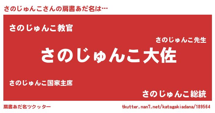 | 男性向けラノベタイトル風あだ名 | 『転生したらさのじゅんこだった件』 |