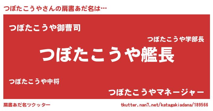 | ヒーロー風カッコイイあだ名 | 『スーパーツボタコウヤ』『幻影騎士ツボ』 |