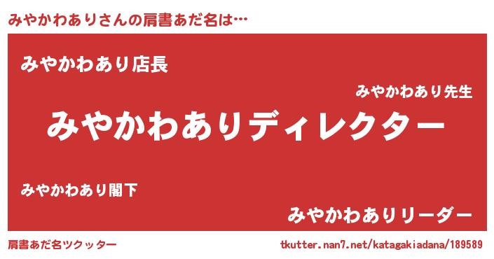 | 男性向けラノベタイトル風あだ名 | 『はたらくみやかわありさま!』 |