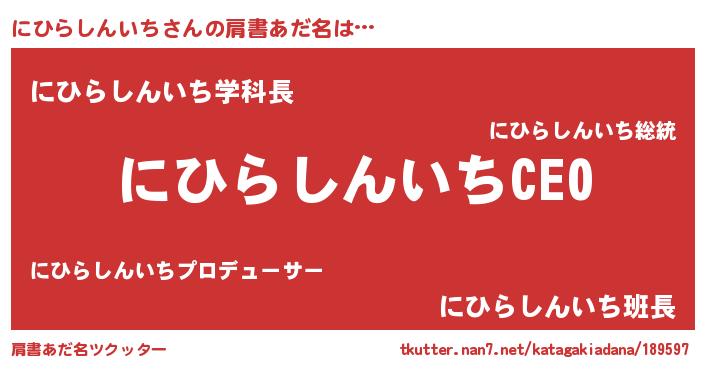 | ヒーロー風カッコイイあだ名 | 『スーパーニヒラシンイチ』 |