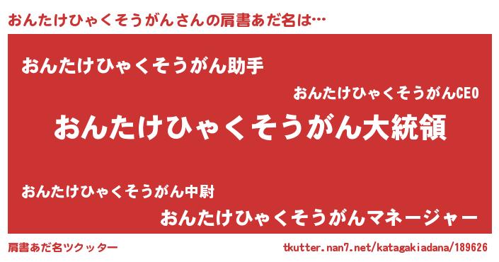 | 意味不明あだ名 | 『おんたけひゃくそうがんフォーエバー』 |