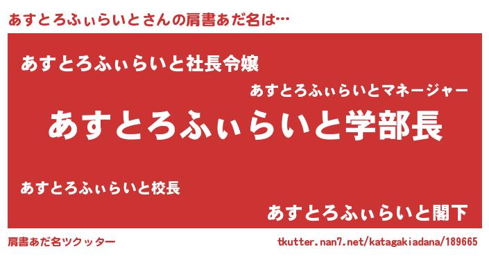 | 女子向けラノベタイトル風あだ名 | 『あすとろふぃらいと恋絵巻』 |