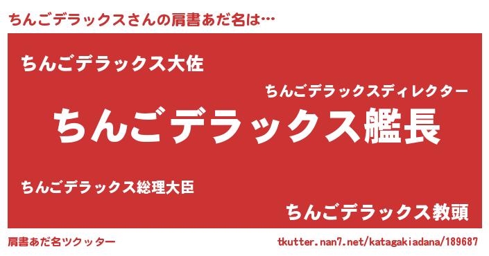 | 伝説のあだ名 | 『古より伝わる暗殺者ちんごデラックス』 |
