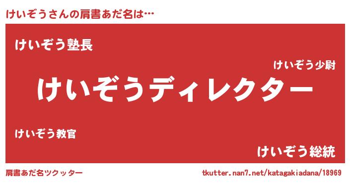 | ヒーロー風カッコイイあだ名 | 『黄金騎士ケイ』『究極戦士ケイゾウ』 |