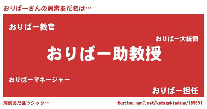 | ヒーロー風カッコイイあだ名 | 『友情の使者おりばー』『仮面オリダー』 |