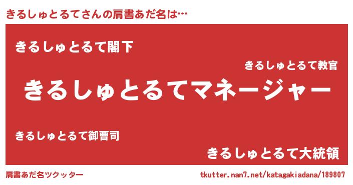 | 意味不明あだ名 | 『自称きるしゅとるて』 |