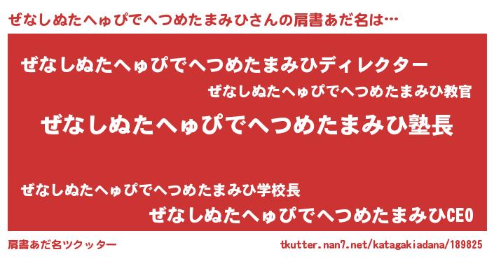 | 欧米人風あだ名 | 『ウサインぜなしぬたへゅぴでへつめたまみひ』 |