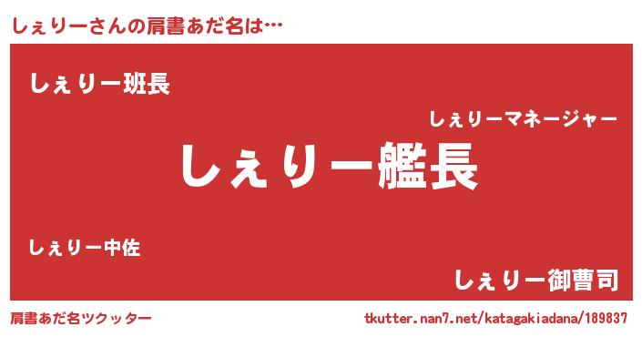 | 意味不明あだ名 | 『とにかく怪しいしぇりー』 |