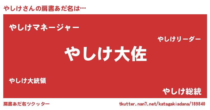 | 男性向けラノベタイトル風あだ名 | 『ヤシケスレイヤー』 |