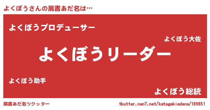 | ヘコむあだ名 | 『よくっちょ』『よくぼう(震え声)』 |