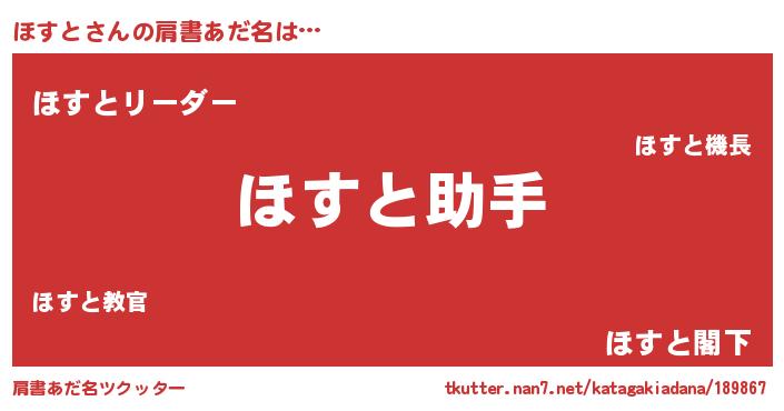 | ヘコむあだ名 | 『ほす太郎』『つくし』『ほすと(爆)』 |