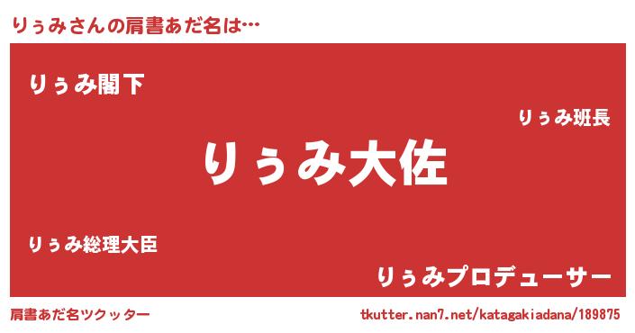 | 男性向けラノベタイトル風あだ名 | 『りぅみ~年齢イコール彼女いない歴の魔法使い~』 |