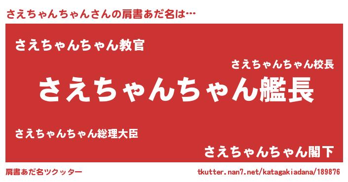 | ヒーロー風カッコイイあだ名 | 『仮面サエダー』『ネオサエチャンチャン』 |